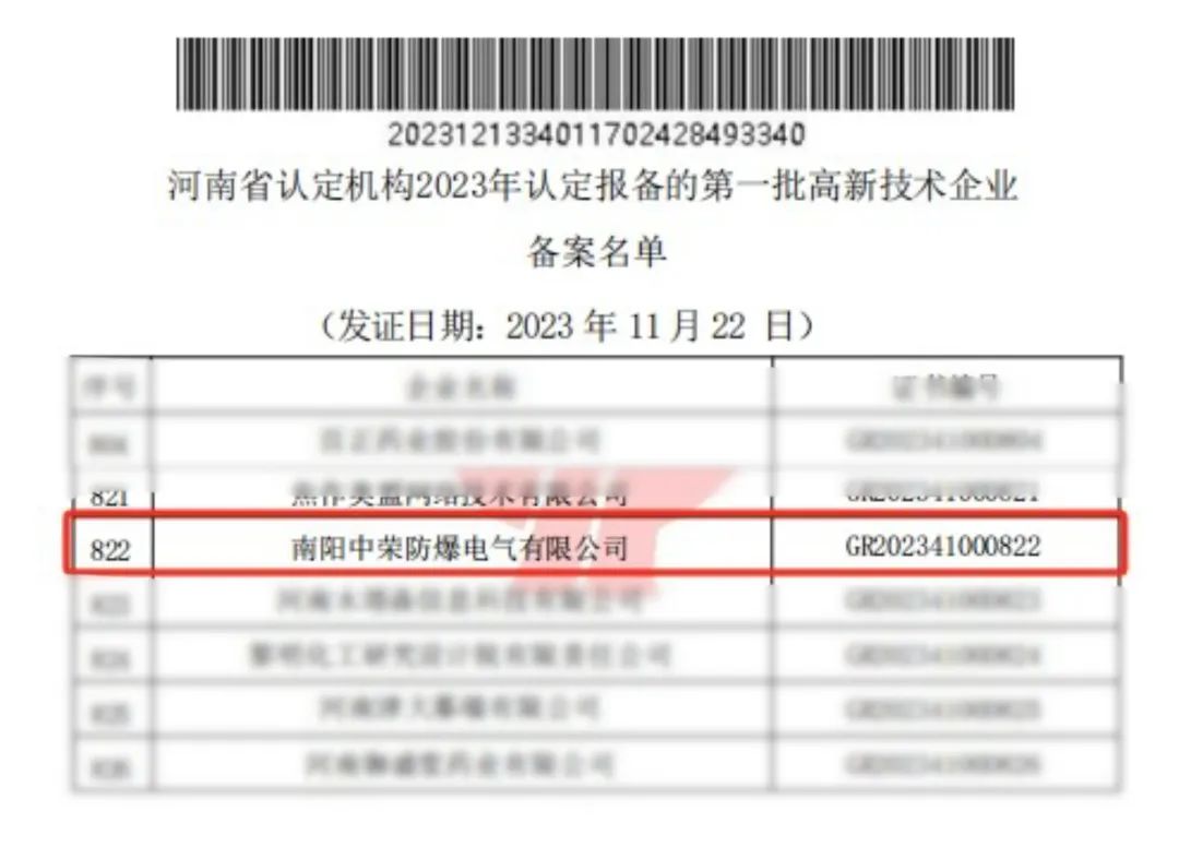 近日,河南省工業(yè)和信息化廳公布了2023年度第二批河南省“專精特新”中小企業(yè)名單,中榮防爆名列其中。這一認定標志著政府及社會對中榮防爆技術(shù)實力、創(chuàng)新能力、專業(yè)度和市場地位等多方面綜合實力的認可,標志著中榮防爆在專業(yè)化、精細化、特色化、新穎化發(fā)展上邁向新的臺階。